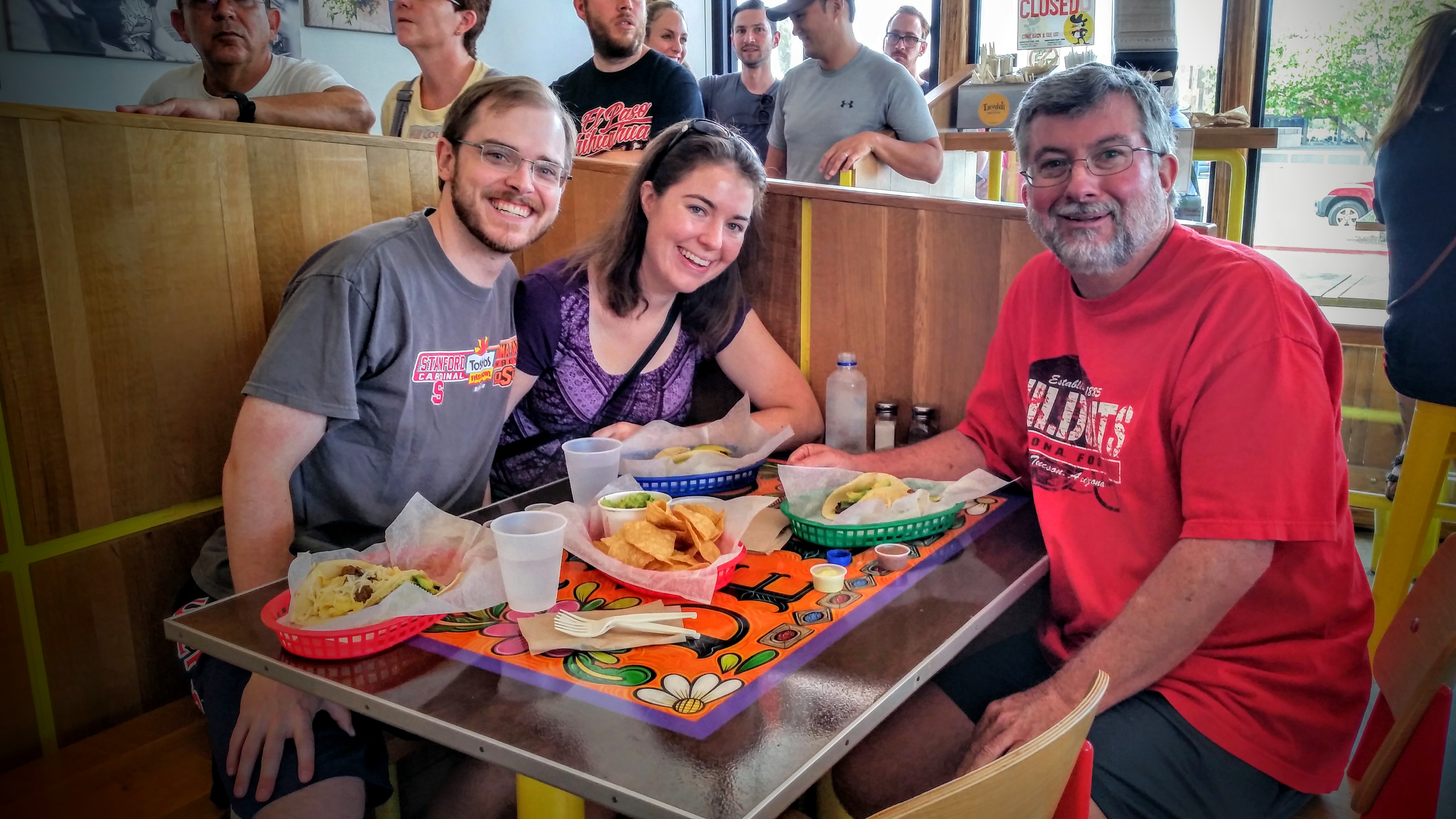 After a wonderful bike ride where I saw 2 deer, I met John and Michelle at Tacodeli for breakfast tacos. Apparently, this is a very popular thing to do in Austin, Texas. The line was out the door when we arrived, but seemed to move fairly quickly. I do not think I have ever had breakfast tacos. These are not your standard tacos with beef and cheese, but an entire menu of different combinations of ingredients. Two tacos was a full meal and they were absolutely wonderful! Lots of yummy flavors to savor and enjoy.