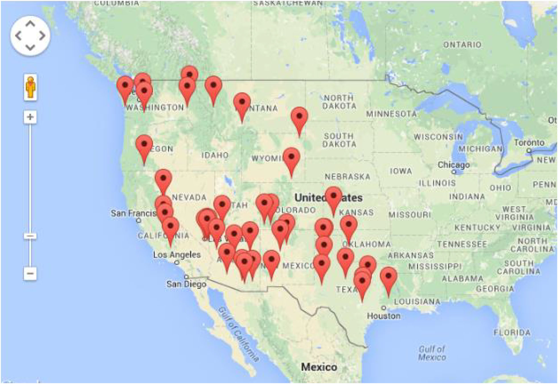 I am a member of a RV social website called RVillage (http://www.rvillage.com/). It is a way to connect with other RVers of similar interests by joining various groups. It also provides a way to connect with people when you move to a new campground or RV park. I have been entering various places as I have traveled and just discovered that it has been maintaining a map with all the places I have entered. I think it is very amazing to see all the places I have stayed in our motorhome. This includes our trip through New Mexico, Colorado, and Texas last summer. I would say this is a superb start to seeing some amazing places around the US. Obviously, there are many more places to visit.