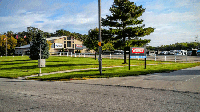 Well, I make it to the Winnebago factory in Forest City, Iowa. I discovered a small, friendly city of people bringing their RVs for repairs and upgrades. There are back-in sites available with 50 amp service. Nearby, there is the Winnebago Rally Grounds that has water and multiple dump stations.