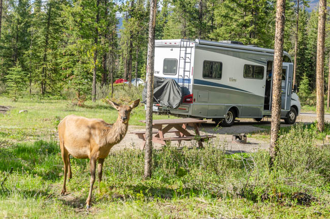 I was reading a novel in my campsite in Jasper National Park, we I looked up and realized there was a huge elk eating dinner in my campsite. I slowly grabbed my camera and she posed for several photos.