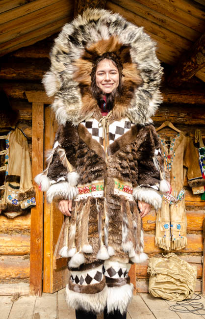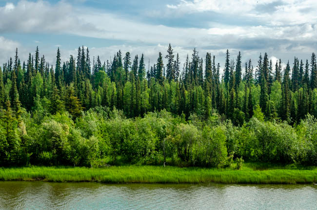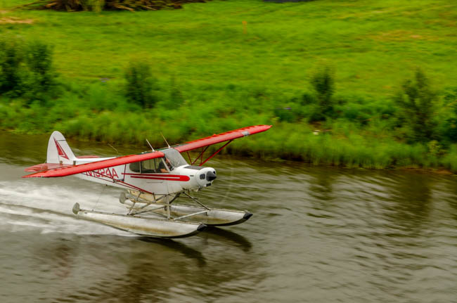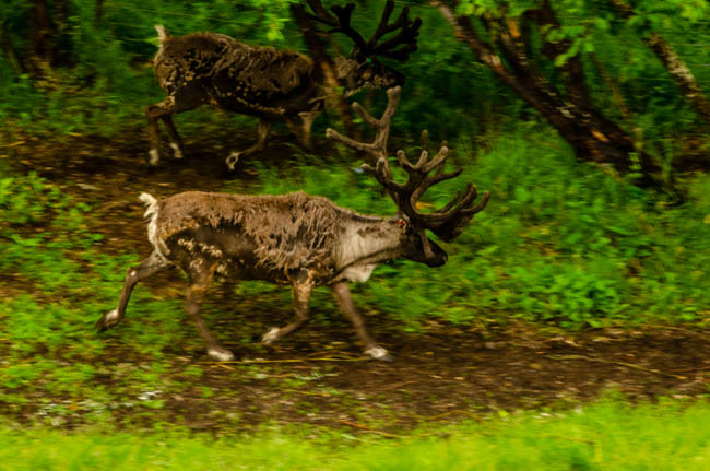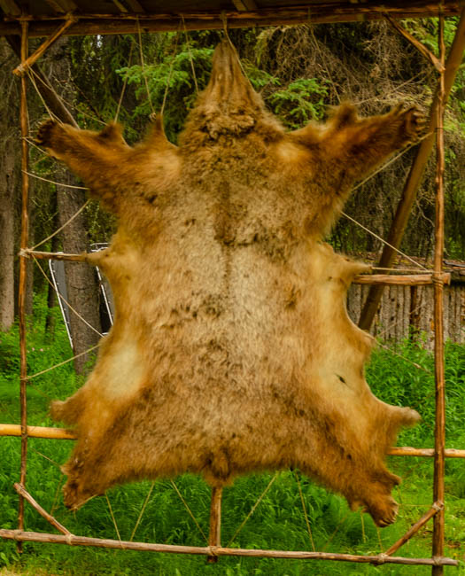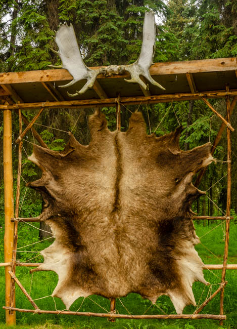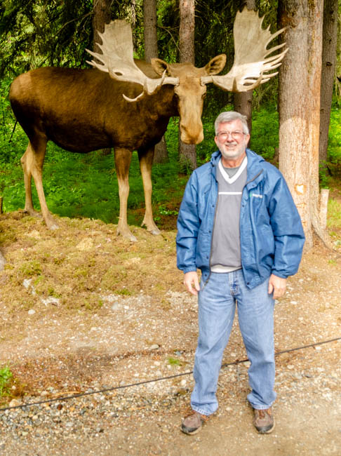 Since I started driving in Canada and Alaska, I have been trying to get a photo of a moose. So far, this hefty fellow is the best I can do. Hopefully, I can photograph a live moose soon!It was amazing to watch this pontoon boat come in for a smooth landing next to our boat!After a few minutes, the pilot took off and had a very smooth liftoff!The tour included hearing from a guy who trains dogs that pull dogsleds! I was impressed with the dog power!I learned that reindeer are domesticated caribou. These guys are losing some of their fur for summer.This is a moose hide.This is a grizzly bear hide.Since I have been in Alaska, I have noticed that it has rained for a little while each day. This has resulted in very green foliage everywhere and many beautiful flowers. I love the colors in this flower.This woman was gracious and allowed me to take her photograph. This coat has the modern convenience of a zipper, otherwise it is like a traditional coat worn in Alaska made from different animal furs. The hood is incredibly amazing to me! I think that many layers of fur are needed to survive 60 degrees below zero during winter in Fairbanks.Although these guys are no longer alive, they demonstrate the fierce intensity when moose fight.Maybe it is because I have lived so many years in Arizona and Texas, but I have been absolutely captivated by the intensity and variety of green colors in the foliage throughout Alaska. I find myself simply staring at the trees and marveling at the thickness of the forest.It has been said that “everything is bigger in Texas.” However, Alaska likes to point out that their state is much, much larger than Texas (plus California, plus Montana). Alaska is truly huge!!