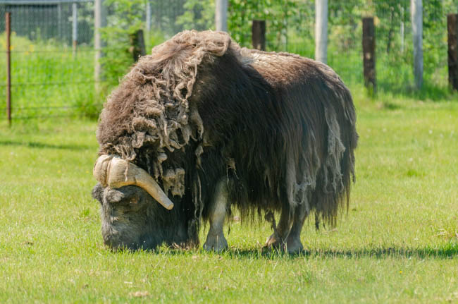 The muskox is an unusual looking fellow. This male was willing to model for me. Big and hairy and very strong, he has a think coat to stay warm in the cold Alaska winter.