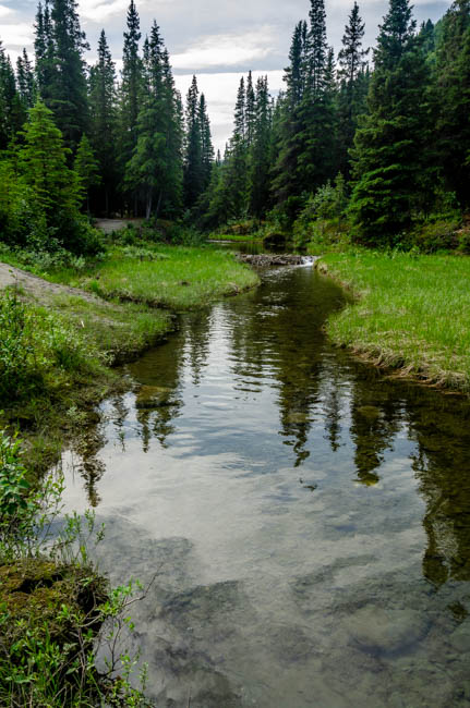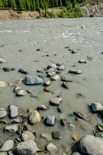 I had the opportunity to go on a hike near the campground and the entrance to Denali National Park. The area is spectacularly beautiful! From the green trees, to the water, to the mountains, to the sky, Denali is truly amazing!Looking closely at the glacier runoff, it is filled with silt. Fish cannot live in it because of all the silt in the water.I love the colors of Alaska. I do not understand why I waited so long to visit such a beautiful location?This fresh water stream was beautiful and very clearHere the clear fresh water stream is flowing into the glacier runoff river. The cloudiness is the silt from the glacier. The trees are a bit different and I was surprised to note that the pine cones were quite red in color.