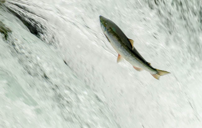 This brown bear caught this huge salmon flying up the falls!!