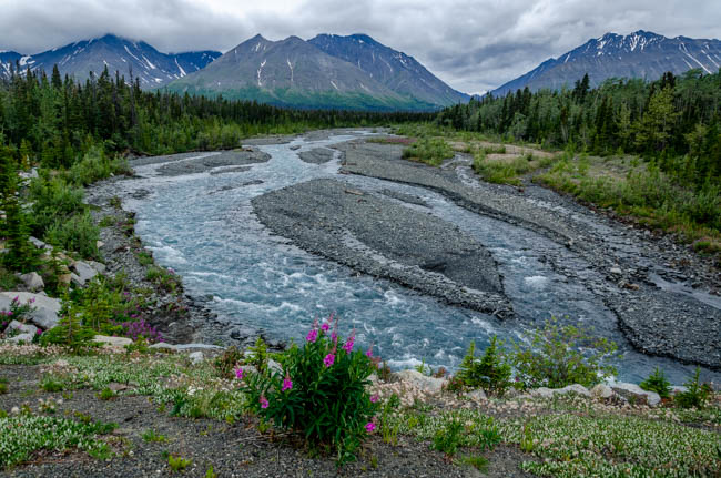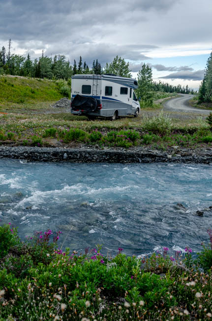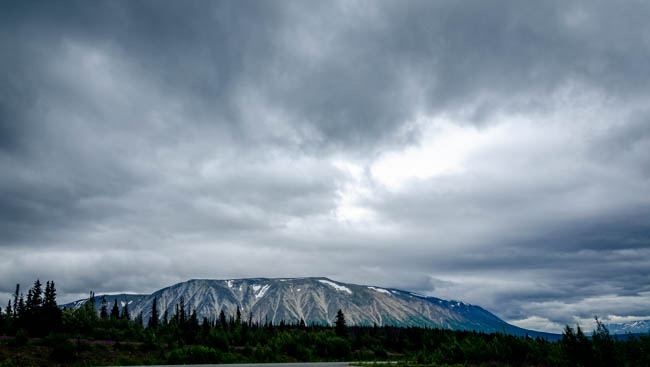 I absolutely loved this campsite. I refueled in Haines Junction and started looking for a place to spend the night. This is the perfect campsite. It was quite with the soothing sound of a creek from melting snow and glacier. It was the ideal location to relax after a day of driving. I loved waking up the sound of flowing water! It was so peaceful and beautiful!As I started driving, there were interesting clouds building over the mountains. Will it start raining?Clouds started building up all around the mountains. I loved the colors within the mountains! Soon after taking this photo, the drizzle rain started to fall everywhere.Once I arrived in Haines, I stopped at the visitor center. The gentleman told me there was an excellent brewery in Haines, so I added it to my to-do list.I sampled two beers and thought they were both great. Tomorrow, I may try another one too. It is fun to meet small local businesses and hear a bit about how they got started.