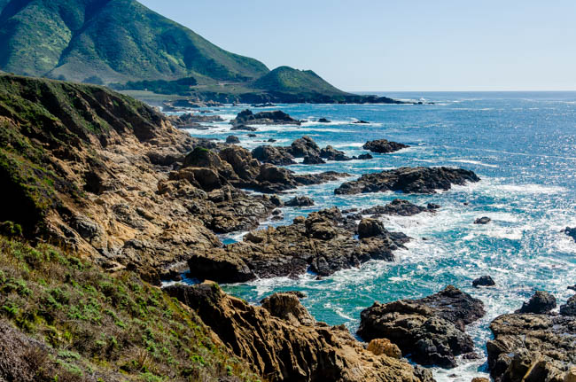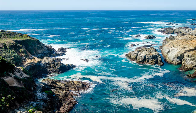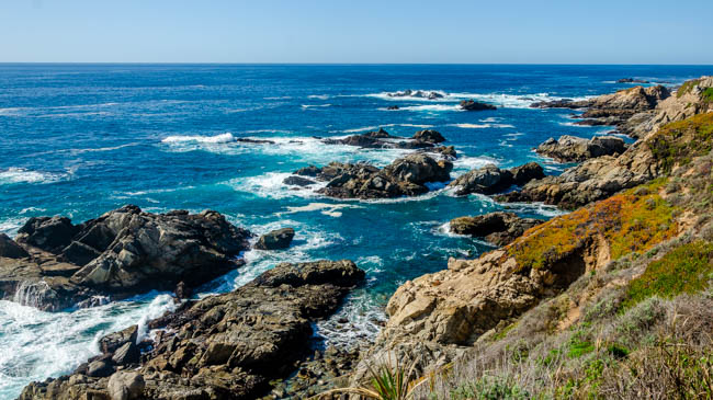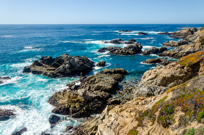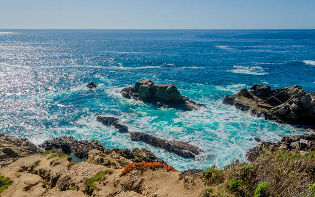 Today was another wonderful day traveling!! I drove to Monterey and had fun walking through many shops in the Cannery Row district. There were many t-shirts to choose from, but I resisted the urge to buy any more :).I next visited the world-renowned Monterey Bay Aquarium. It was extremely impressive. I wish the grandsons were with me to enjoy it too.I loved seeing so many species.It was amazing to see so many fish!Many children were at the aquarium and they loved seeing these fish.This shark looked hungry and on the prowl.These “tentacle” structures moved as the water flowed around them.I think I ate one of these last week in Santa Barbara while visiting Elizabeth!!This bright-eyed bird was staring into the water for his next meal!!I drove south on Highway 1 and really enjoyed some spectacular scenery!!I loved seeing all the colors of the water and rocks!!The waves made loud crashing sounds as they came down on the rocks!!I love the colors in this photo!!Indescribably beautiful!!Spectacular!!I simply love these scenes!!