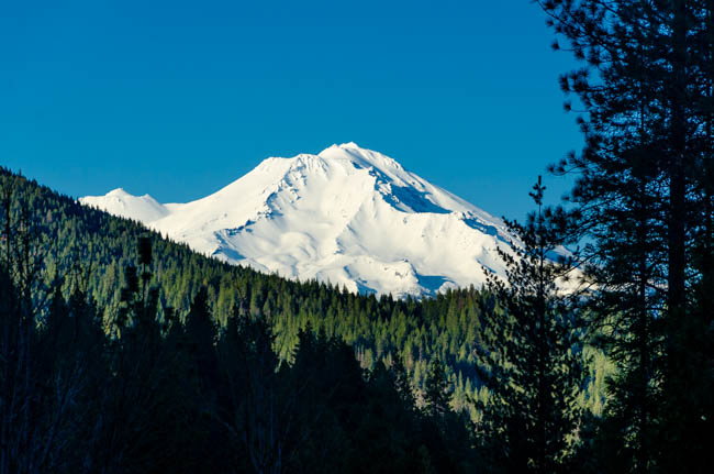 John and I drove 45 miles north of Redding and found this wonderful view of Mount Shasta!! It is a spectacular mountain and reminded me of the mountain north of Flagstaff.I love the contrasting colors of the blue sky, white snow on the mountain, and the green trees in the forest.