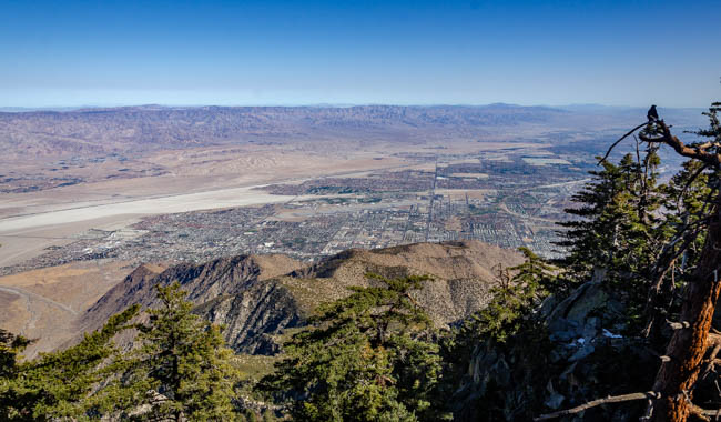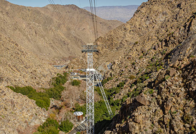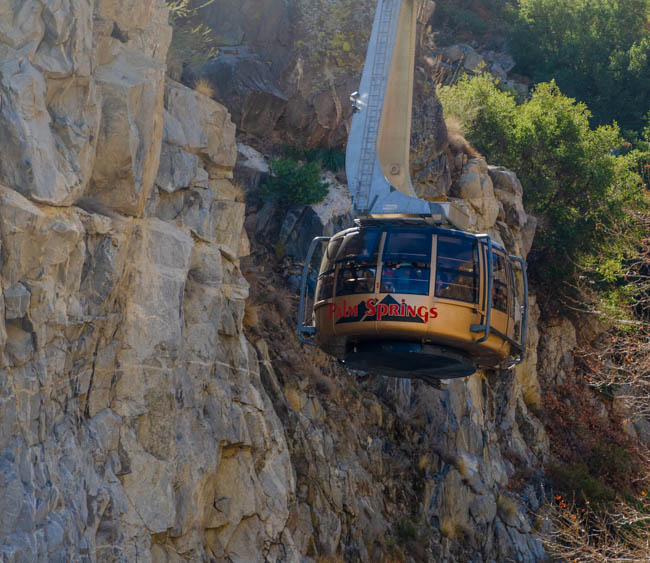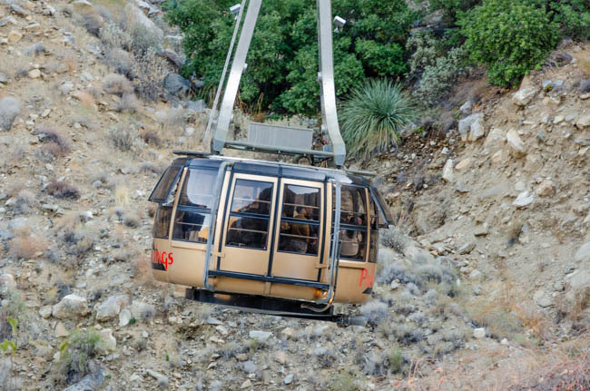 John and I had a wonderful trip to ride the Palm Springs Aerial Tramway!! The tramway base (Valley Station) is at elevation 2,643 feet and the tram quickly rises to 8,516 feet. This photo was taken at the top of the mountain and we had beautiful views all around the area.The terrain is quite rugged and the tram glides “smoothly” above the rocks.I was surprised at the large size of the tram and how many people fit inside. It was interesting to be within the tram as the floor of the tram slowly circled around as it moved along the cables. You could not hold onto the inside edge within the tram because the sides kept moving. It was fun to ride. One guy next to us was quite nervous with the swaying of the tram as it moved along the route. It was quite full and can hold 80 people!!This photo was taken within the tram as we looked back to the station where we started. I has able to hang my camera out the window to get a clear view!This bird greeted us at the top of the ride. He was especially loud as he watched everyone!!We had a beautiful view of Palm Springs from the top of the mountain!!In he middle of the photo are the wind farms seen in the distance.We had a beautiful view of the clouds moving into the mountains. It was spectacular to watch the expansion of the clouds rapidly shifting as they enveloped the trees!!As seen from the outside, the tram swings at quite an angle as it moves up the cables. While inside, it was fun to ride in it!!This is the original tram car that was used in Palm Springs!!