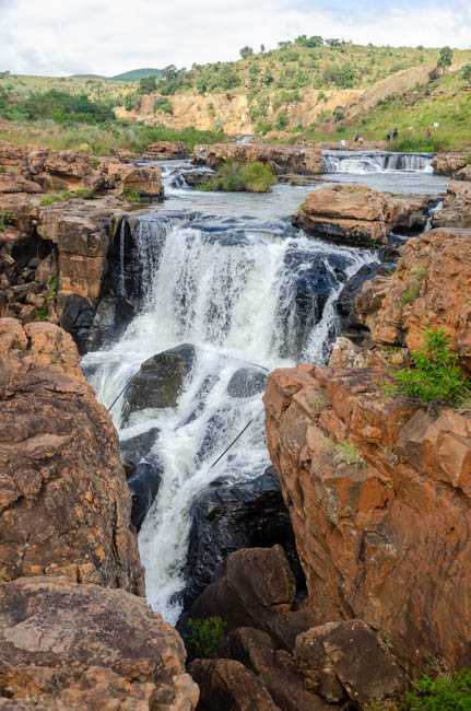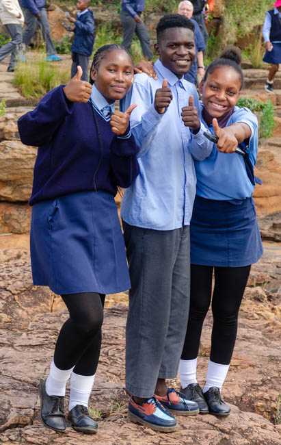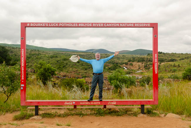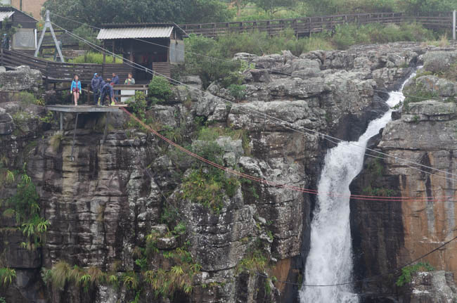 Our plan for the day was to drive along the Panorama Route in South Africa. Our first stop was Graskop where we saw this gorgeous waterfall!!Believe it or not, but some people are amazingly crazy! The woman in this photo was hooked into a harness and them jumped out from that platform in a zip line!! I could not believe that she did it!!There were some great singers and dancers on our path at our second stop, Bourke’s Luck Potholes. Gold was found in these “potholes.”It was fun looking at the gorgeous scenery!!The “potholes” are these section of rock where the water has carved out shapes in the rocks.Africa is a beautiful land!!I really enjoyed the sound and sights of the waterfalls!!This is one of the pedestrian bridges we needed to walk across to get a nice view of the waterfalls.These students were having fun and asked me to take their photo!I think this was my favorite waterfall at Bourke’s Luck Potholes!I love all the colors and shapes that are everywhere in South Africa!For lunch, we stopped and ate at a beautiful resort! After our meal, we walked outside by the pool and were greeted by gorgeous clouds breaking up and giving us a glimpse of the greenery that surrounded us! We simple stood and watch the clouds move slowly through the area!I seem to stumble upon beautiful flowers growing around us!Our last stop of the day was to go to Pilgrim’s Rest and learn about how gold was discovered there and the enormous impact gold had on South Africa’s economy!Macadamia nuts are grown in the area and this guy was doing his best to get us to buy some of this products. Rather than carry his box of nuts, it balanced it and carried it on the top of his head!This pretty flowers were enjoying the gentle rain and greeted us as we walked through Pilgrim’s Rest!!