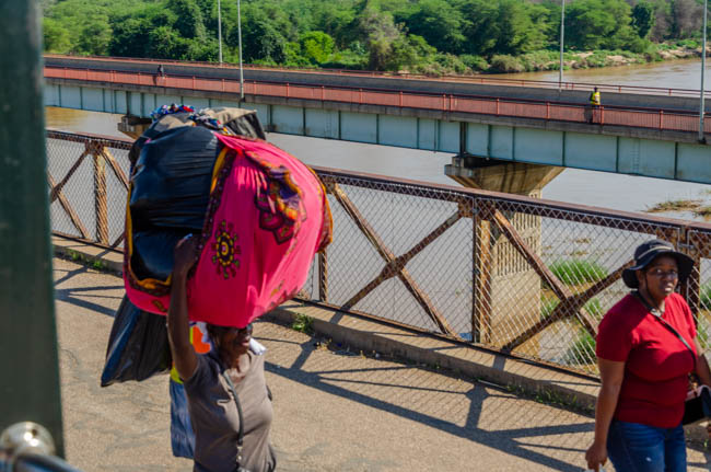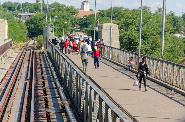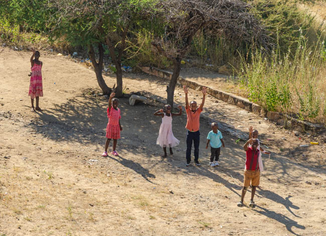 We made great progress on the train today and left South Africa and entered Zimbabwe! As we moved down the tracks, we could see people that had purchased items in South Africa and brought them into Zimbabwe.At the midpoint of this river, we were in Zimbabwe!Some people were carrying huge loads into the country!As the train chugged along, kids would run and wave enthusiastically at us!!Everyone was quite excited. I was excited to enter by 4th country on this trip!This is not the most high-tech railroad sign, but it gets the job done!I thought the Zimbabwe flag was quite colorful!!This hostess was quite helpful to us. While we were on the train for the entire day, I asked her to teach me about high tea and different cocktails that were so popular in South Africa. As she described various cocktails, I told her that I had never heard of any of them. She smiled and with her wonderful accent said, “Sir, we are South Africans and we take our drinking quite seriously (i.e., precisely). There is precision in selecting the ingredients and amounts of each component. They must be made to the proper South African standards!