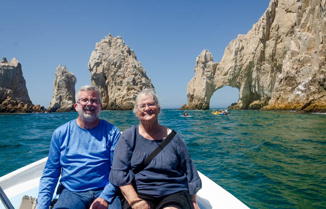 We have seen photos of the famous Arch of Cabo San Lucas and today we had a great tour to see it ourselves!! It is at the southern tip of the of the Baja California Peninsula! It is beautiful, and where the Pacific Ocean meets the Gulf of California (formerly Sea of Cortez).Everyone has a great time in Cabo!! These guys had their music loud and everyone was swaying to the beat! Alcohol might be involved.As we left the harbor, our guide showed us several caves into the rock along the coast.At this angle, the top of the rock is in the profile of a lion’s head!!Going farther down the coast from the marina is lovers beach. The is a popular beach for swimming that is only accessible by boat. It is beautiful and great for swimming.From the Gulf of California is a small opening there the Pacific Ocean can be seen!! The water is much calmer in the Gulf of California than the Pacific Ocean.This is the famous El Archo de Cabo San Lucas!! I loved looking at the ruggedness of the rock with the rich blue-green color of the water!!As we backed away from the arch, kayakers were paddling in to see such a gorgeous site!!Next to the arch, these sea lions were relaxing on a big rock!This is lands end!! It is the very tip of the rock at the end of the Baja California Peninsula!! As our boat went passed this point, we moved from the Gulf of California into the Pacific Ocean!!As we moved into the Pacific Ocean, we reached divorce beach. It has much rougher waves. It is opposite of lovers beach on the other side of the peninsula. As we headed back down to Lands End, we could see the back side of the arch and all the boats gathered on the gulf side to view such a beautiful scene.As we moved slightly farther south, we could see through the main arch and see the smaller opening that lead to the Gulf of California!!Our boat driver called this cave Pirates cove!!As we were on our way back to the marina, we passed this boat. Everyone on top was excited to have their photo taken!!After our boat tour, we visited a glass factory in Cabo San Lucas!! It was amazing see see all the things these guys created!!From a glob of molten glass, we watched this guy create a beautiful dolphin!!I liked this humming bird that was for sale in their shop!!I absolutely love the colors of Mexico!! It is such a beautiful place with so many wonderful people!!Our next stop was a tequila shop for a tasting of a broad range of tequilas! Here, the mango flavored tequila was my favorite!!Back in San Jose del Cabo, we ate at a wonderful restaurant. Next door was Eddies restaurant. The owner thought it was fun that my name was the same as his restaurant!! He encouraged me to take photos of several of his signs.When traveling to other countries, I often enjoy seeing the colors of other flags. I have always loved the colors of the Mexican flag!
