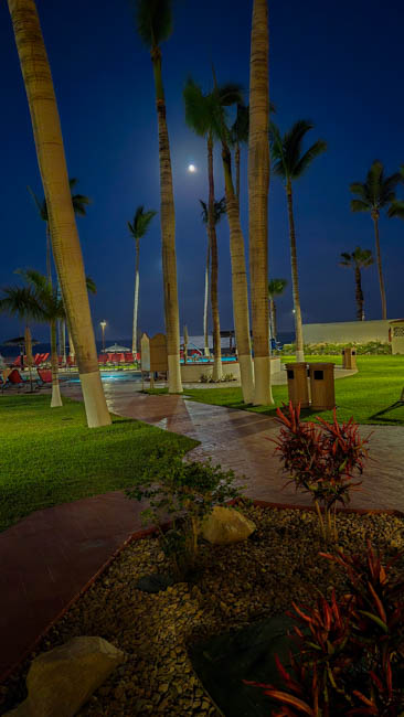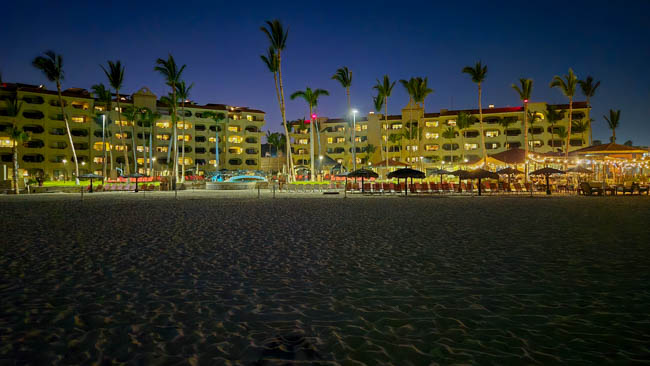 Sitting on our porch, we enjoyed a spectacular full moon!! This photo is from our room, looking over the pool and spa. It was a wonderful view!!John and I walked down to the beach to see the reflection of the moon across the Gulf of California!! It was so beautiful!!Looking to the south, we enjoyed all the lights from the resorts and houses!! What a gorgeous evening!!This was the view of our resort from the beach! It was amazing!!