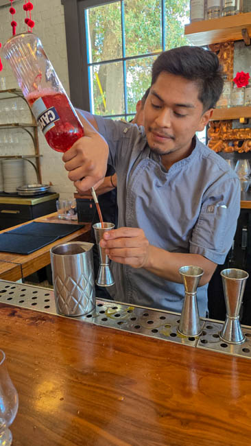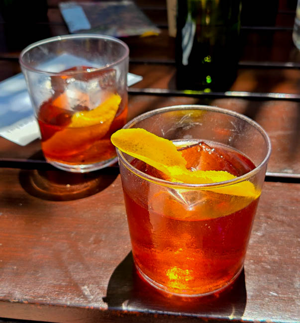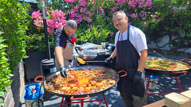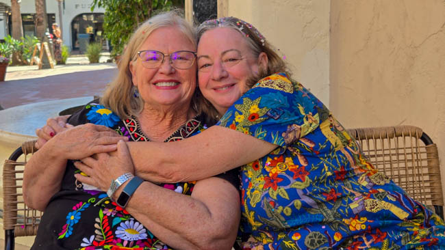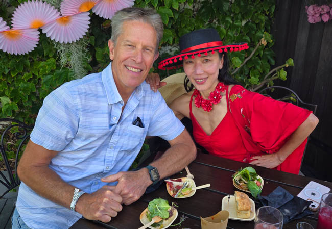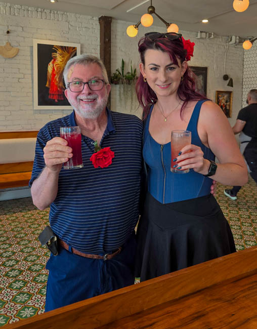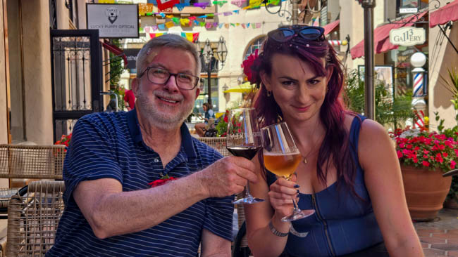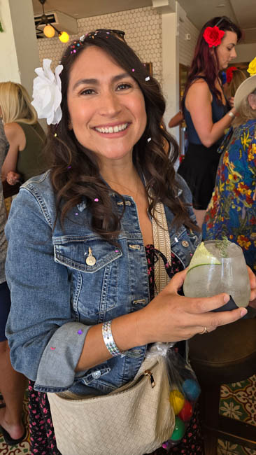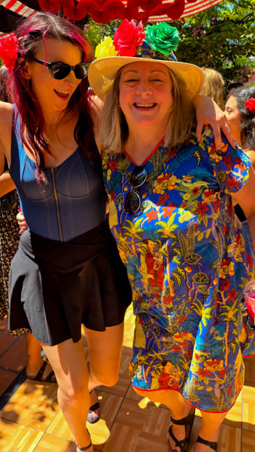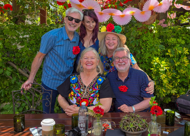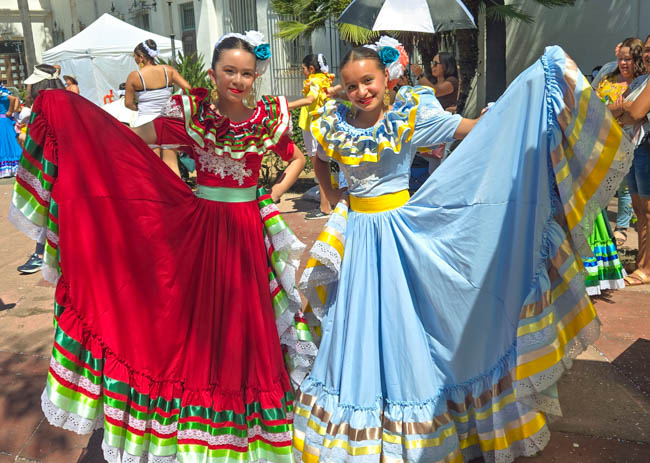 On the stage were all kinds of colorful dresses spinning and turning to the music!! It was so much fun to watch!Ladies getting ready to dance were excited to showcase their dresses!I really loved all the colors in these dresses. Flamenco dancing is serious business!!These colorfully dressed young girls were getting ready to go onstage and dance!!The Spanish colors were flying everywhere around Santa Barbara!!Charlene met a good friend she wanted to bring him home!!When you go to Santa Barbara, it is a requirement to taste their spectacular wines!! Here Rachel and I were enjoying a glass at our favorite wine tasting location!!Charlene and Elizabeth found this great dolphin as we were tasting wine for this special photo!!As we were enjoying our wine, this wonderful mariachi band stopped and played some great songs!! I simply love listening to their music and watching them play. There were a number of mariachi bands playing around the city!!I especially love this photo of Charlene and Elizabeth as we were enjoying our wine!!People celebrate Old Spanish Days by sprinkling confetti on each other!! We had such a wonderful time!!The following day, as we were waiting for the fiesta at Loquita restaurant to begin, these horses walked by to get ready to be in the parade.Loquita had an unbelievable fiesta!! There was unlimited sangria and all kinds of tapas plates of foods to enjoy! They gave us these festive flowers as we entered the restaurant!!This gentleman was carving a jamon (ham) to serve on the tapas plates. It was cooked to perfection!An especially wonderful treat for me was to see Rachel!! She is quite the impressive professional!!It was fun to learn about mezcal and try a number of shots! This is a great product and very smooth!!We especially enjoyed eating the paella!! It required quite a while for it to be prepared, but it was well worth the wait!! We received a ticket for the paella as we entered the fiesta and enjoying it was one of the highlights of the fiesta!!This couple was at the table next to us and I told the woman that I especially loved her hat!!In addition to the unlimited sangria, their bar was in operation for making various cocktails. It was such a fun fiesta!!While we were at the bar ordering drinks, I enjoyed talking with this woman. I especially liked both the confetti and the beautiful white flower in her hair!!These are the special negroni cocktails that Elizabeth ordered! They were a delight to drink!!Everyone was enjoying the fiesta celebration!!A special highlight of the fiesta at Loquita were the flamenco dancers!! It was incredibly fun to enjoy the music and watch the dancers!!It was amazing to watch the moves and grace of these two dancers!!Mother and daughter were impressively moving to the music too!!Brother and sister also had a wonderful time dancing together!! The Loquita fiesta was so much fun!!These wonderful ladies were dancing near us and it was wonderful to take their photo! Everyone had a great time Old Spanish Days!!