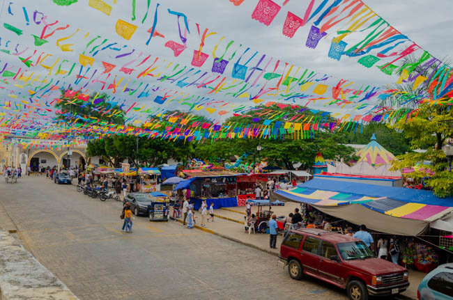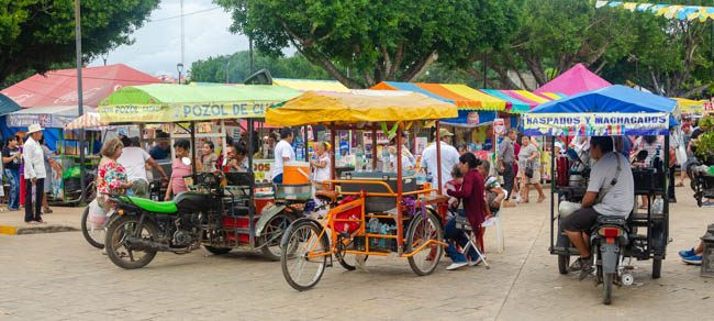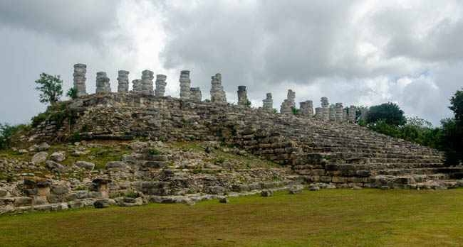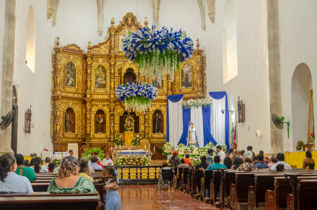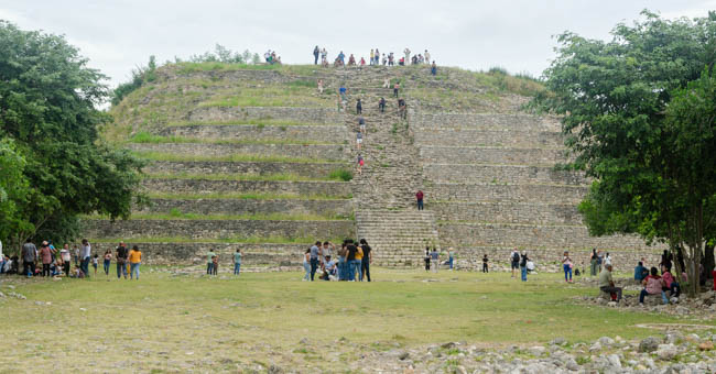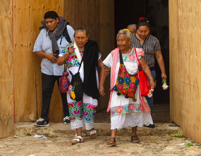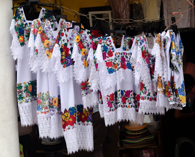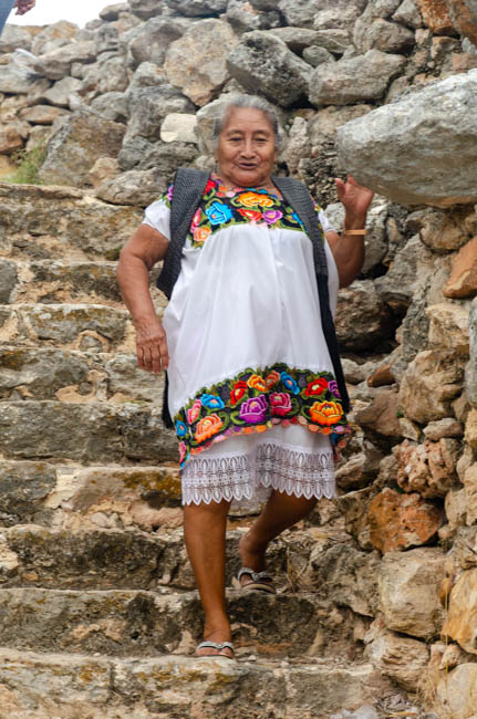 After breakfast in Merida, we drove to see the Ake ruins. These were massive and impressive Mayan ruins. Over time, some trees have started to grow from the ruins.This shows the number of levels the Mayans used as these structures were built. It also shows the brewing storm clouds that were moving in!These columns built by the Mayans were very impressive that they were still standing! I was surprised because most ruins do not have columns like these. It also shows the dark clouds becoming more foreboding!Right after I took this photo of another Mayan ruin in Ake, the clouds opened up and we had a major rainstorm. I brought a rain coat, but it was warmly stored in my hotel room and not available when I needed it. Despite the storm, we gathered under a large tree and continued listening to a lecture about the Mayans and learned more about the site. Everyone was completely soaked. It was sort of refreshing because it had been warm and humid throughout the morning. I protected my camera under my big hat. The Yucatan is quite an interesting and surprising place!The next agenda was lunch in a nearby town. This was shredded dear meat cooked in yummy spices. I has some wonderful slices of avocado too! The small bowl on the plate was filled with very hot habanero spices! These spices were extremely hot!! I sprinkled only the liquid in the spice bowl onto my food. The spices added a nice zest to the meal.Next, we drove to Izamal and enjoyed seeing everyone celebrating Our Lady of Guadeloupe. These embroidered dresses were an important local custom of the celebration. I absolutely loved the colors!All kinds of vendors were setup throughout the community!!I was not able to identify the role of this woman, but she appears to have been honored as part the celebration. She saw me looking at her and welcomed me to take her photo! She grabbed the purple sash and ran it along her arms so that it would be included in the photo. It was quite fun to take her picture!This is the top of the church in the town. There is some controversy because it was built on top of one of the main Mayan ruins.I enjoyed watching these ladies leave the church wearing their beautiful dresses!Inside the church we saw a statue of Our Lady of Guadalupe. As we left the church to walk to another famous Mayan ruin, it was fun to see the colors and festivities of the celebration!!I enjoyed how this horse and carriage were decorated!!Vendors were setup everywhere throughout the town!!The locals were relaxing on the curb!I loved the colors on this lady’s dress! We was walking down the steps from the largest Mayan ruin (by weight) the Yucatan region. I climbed up one series of steps on this Mayan ruin, reached this plateau, and could then see another series of steps to the top of this pyramid. I decided to forgo the final series of steep steps and instead enjoy watching people climb up and down the ruin.