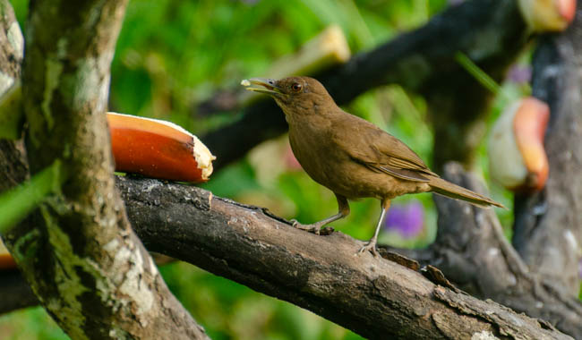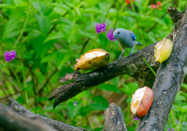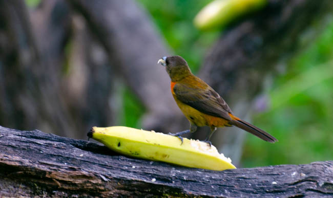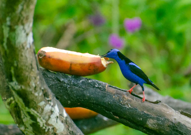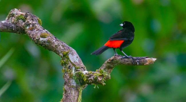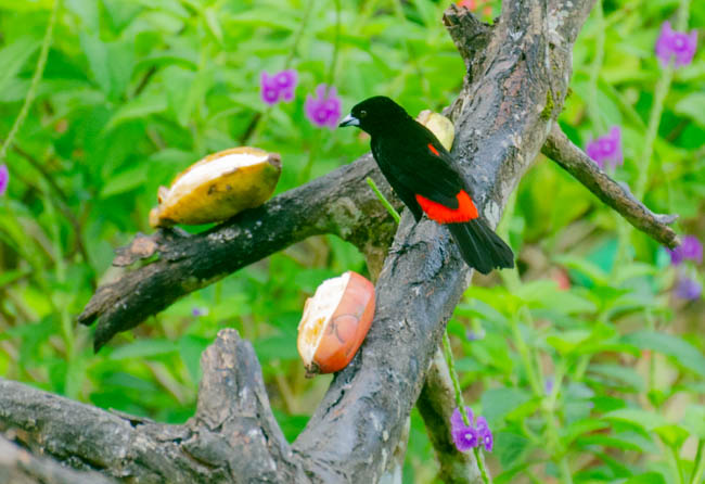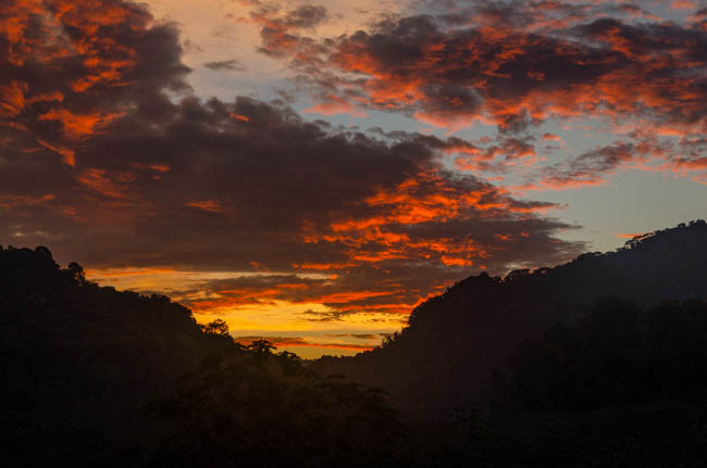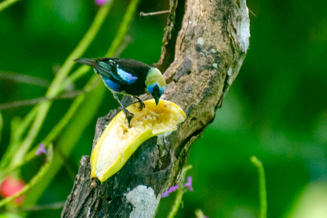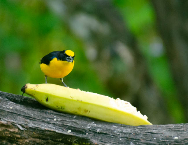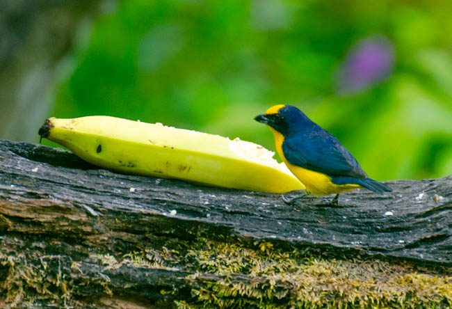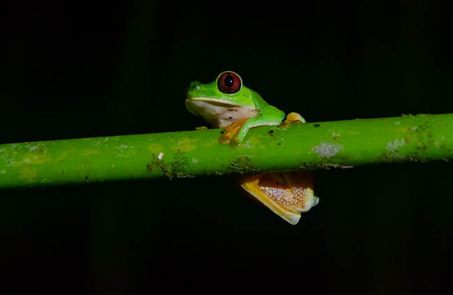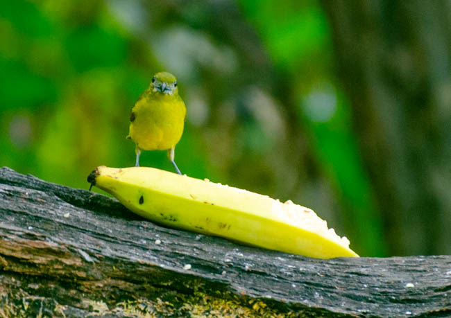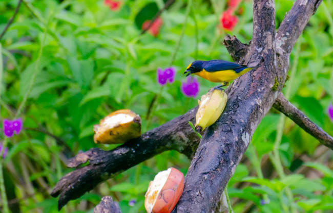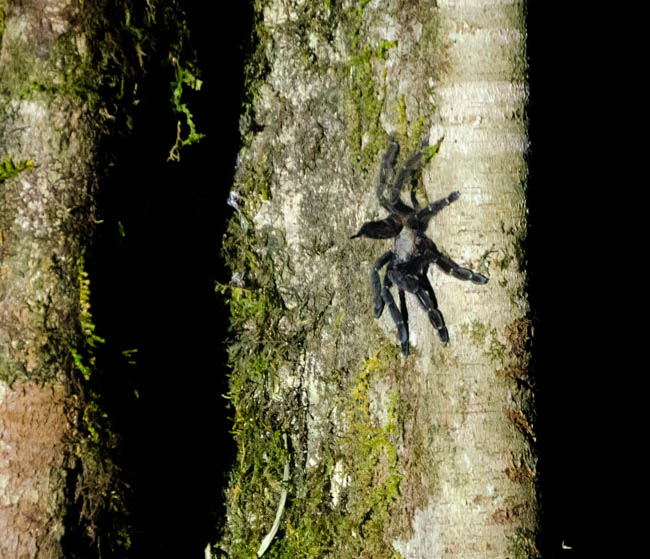 We had a spectacular sunset as we enjoyed dinner!! Afterwards, we went on a night walk with a local guide. It was amazing to see creatures that thrive at night!!Our first encounter was a poisonous frog!! Our guide held the frog by the back of his body to avoid the area where poisonous substances are secreted.Our next encounter was this small snake. Our guide said that this snake was not poisonous. However, I do not like to be too close to snakes!!This is another view of our friendly snake. I thought it was interesting that he had a white color on part of his head.Our next encounter was a Costa Rican scorpion. There are a number of different scorpions in Costa Rica. Our guide found this guy in a tree and sort of scooped him into a plant “wrapper.” He carefully opened the wrapper with two rocks so we could see him. This guy was quite a bit larger than most of the scorpions I have seen in Arizona.This is another view of the same scorpion to show that he glows under a black light.We next came across this friendly frog. He patiently sat looking at us as we photographed him.Our next discover was a tarantula sitting on a tree trunk. As long as we kept some distance, he did not seem to mind being photographed. As we walked closer, he moved inside the tree.We next discovered this amazing spider. She had quite a large web and seemed to be waiting for a large bug to be caught in her web.We next discovered this frog that was enjoying the night!! He seemed happy to be photographed!This little guy is the star of the show!! This is Red Eye Tree Frog and he is very famous in Costa Rica!! A photo of this guy is the lead photo for the tour I am on. He is small, but his huge red eyes capture everyone’s hearts!! We were very excited that we were able to find one of these guys!!Our last night creature was this amazing bug that had two green lights on the front of his head!! When he was getting ready to fly away, he had an orange light start on his abdomen and then he flew away!!The next morning, I got up at 5:30 am to photograph birds near the lodge. The lodge staff put out fruit on some nearby branches for the birds to eat. I have been infatuated by this bird for the past few days. I love the brilliant orange color and jet black feathers. He moves around quickly, so he is hard to photograph.I love the gorgeous colors of all the Costa Rican birds!! They are amazing!! Many people in our group have a strong interest in discovering these birds!The birds really seem to enjoy bananas!!I really like to blue colors of this bird!!Brilliant yellow feathers are so gorgeous!!I really like this bird!! His colors are amazing!!This cute guy seemed to be quite intrigued with being photographed!!This rotund guy was very happy enjoying his banana!!I loved the colors with this bird!!The multiple colors of this guy were beautiful!!I thought this yellow and black combination was fantastic!!This guy was a happy eater!!Fruit is very popular with the birds!!