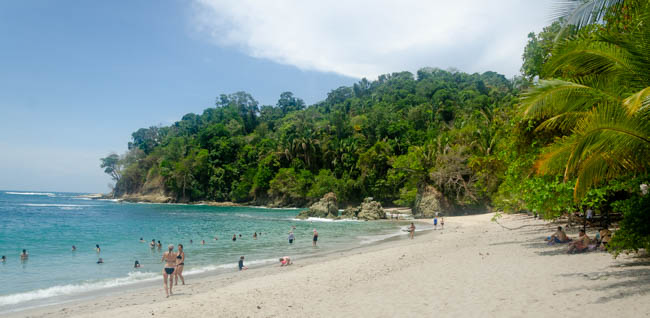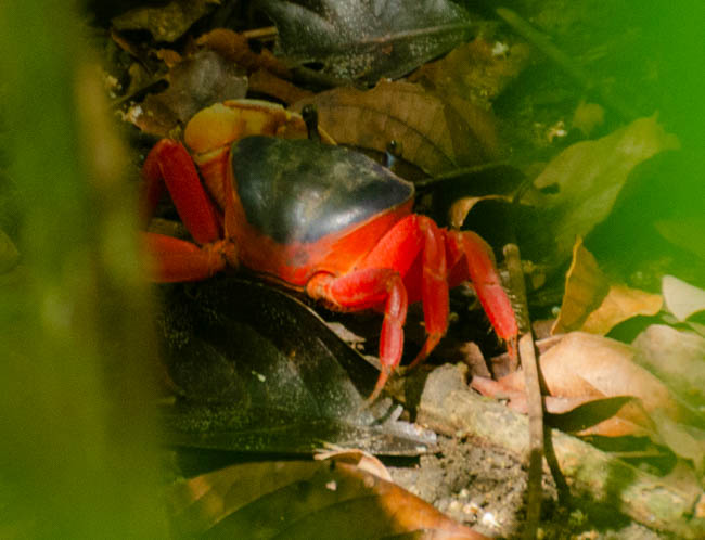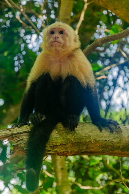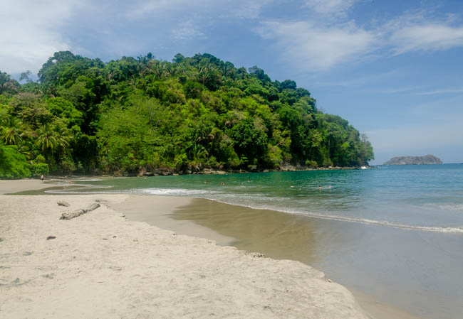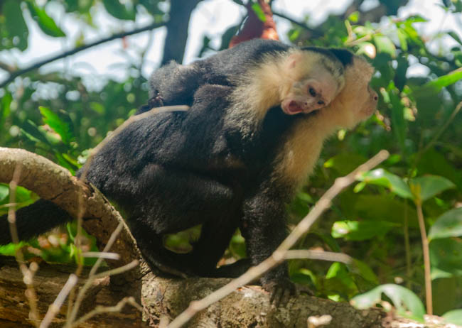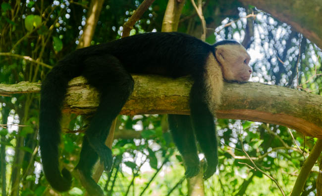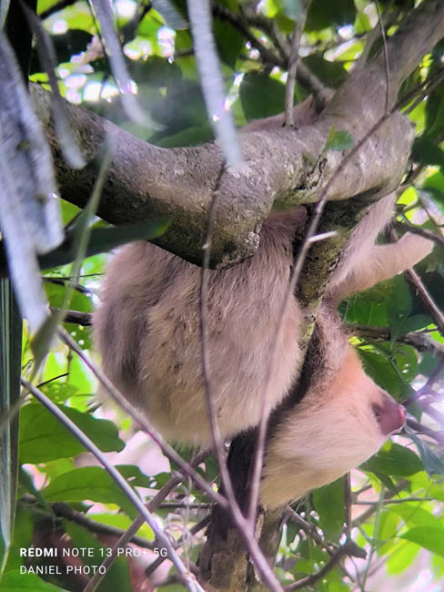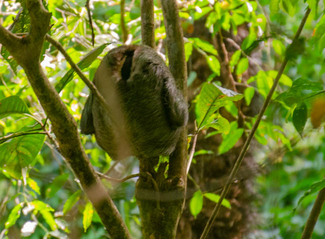 Manuel Antonio National Park is one of the most famous locations in Costa Rica. There are amazing wildlife in this national park!! However, as a visitor, you do not always see some of the wildlife as they may be hiding or sleeping. Unfortunately, this photo is of very low quality. It was the best I could do photographing a sloth that was quite a ways away in a dark forest. I was excited because this was the first animal that we found as we entered Manuel Antonio National Park. Your cannot see the head, but you can see the sloth hanging down sleeping comfortably.Fortunately, our wonderful guide Danny had his trusty telescope and he took this fantastic photo with his cellular phone attached to his telescope. With the added magnification, you can much more clearly see this sloth hanging upside down and sound asleep!!We also said hello to this friendly lizard sitting and this branch near the trail where we were walking.It was fun to see this frog sitting on this tree!!A little while later, we found another frog happily sitting on another tree!We were extremely excited to see a second sloth!! This guy is a male as identified by the dark stripe on the top of his head. He is hunched over facing away from us sleeping soundly.We discovered this colorful crab down in a revine. He has blue on the top of his back and orange body and legs.This big iguana seem interested in checking us out!!This iguana was interesting because of the blue coloring along his back!!It was interesting to watch these monkeys. The one on the right seems to be sticking his tongue out at the monkey on the left!!The guy on the left seemed as interested in us as we were in watching him!!It is amazing to see the monkeys move around so easily high up in the trees!!This little lizard was very quick!! I was glad I was able to catch him watching us!The white faced monkeys seem to be a highlight of the national park. These monkeys were like kids zooming in different directions!This guy looked quite intense!! I think he was looking to get into mischief!!This guy was hilarious to watch!! He was zooming around from tree to tree, when suddenly he decided to plop down and rest on a branch!!I enjoyed watching this guy pause and reflect on what he was going to do next!!I especially enjoyed watching this mother carry the baby monkey on her back!! The little guy seemed to want to tell mom what to do!!The mom and baby monkey were keeping tabs on everything that was happening around them!!I was especially excited to discover this sloth!! You could see the fuzzy sloth sound asleep in the trees!!The beaches within Manuel Antonio National Park are superb!!The beaches here a refreshing!!