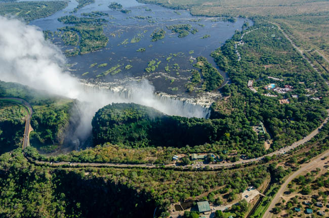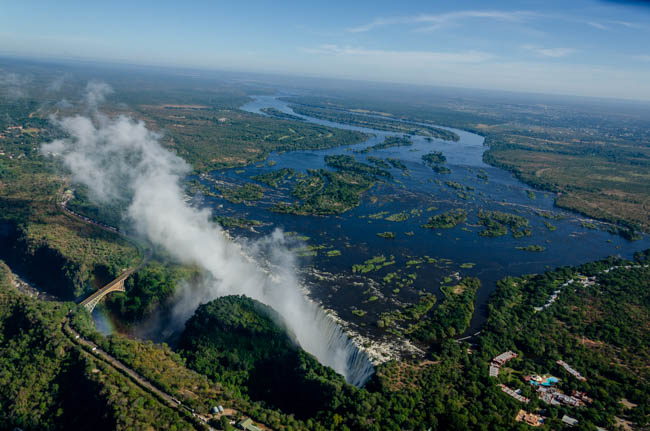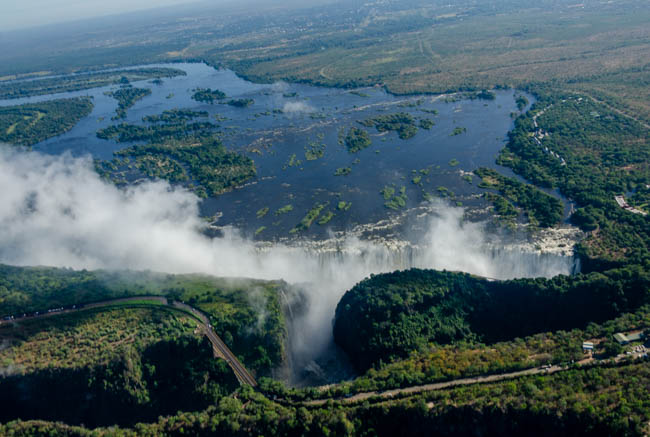 Because of the huge size of Victoria Falls, I took a helicopter ride to get a better view of this enormous waterfall! It was amazing to see the amount of water that was pouring down the falls and all the mist that was created. It was a tremendous ride!!There is so much mist created that at times the falls are obscured in sections!!The aerial view provides a bit of perspective of the massive falls compared to the bridge and road!I was so impressed to see the power of this tremendous waterfall!!This was one of my favorite views of the width of Victoria Falls. Truly an amazing place to visit!!