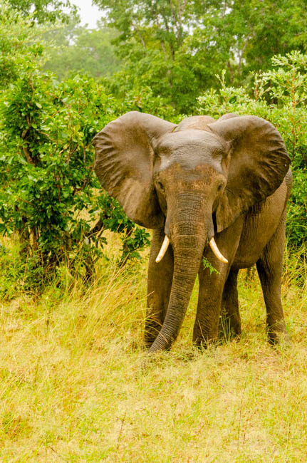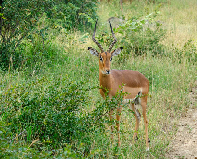 We had an incredible day at Hwange National Park!! The day started by seeing this beautiful male waterbuck! I love the horns on these guys!!Right around the corner, we found this marvelous giraffe!! These are beautiful animals!!We heard on the vehicle radio that lions were found and we quickly changed directions and found this spectacular male lion!! It was incredible to see this wild lion so close!!Continuing down the road, we found this gorgeous monkey climbing in a tree! I was amazed at the size of his tail!!We found this beautiful female kudu with her baby in a nearby field. They are so beautiful!I am not sure of the name of this guy, but I loved his coloring. Africa has many gorgeous birds!!We found this muddy turtle making his way to a big watering hole. He seemed to be looking intently at us!We turned around from the turtle, and we saw this gorgeous elephant moving toward us! He was moving quite quickly through the grass. He was amazing to watch!This guy was a jackal looking at a nearby watering hole!These guys are small in the photo, but they are ostriches. The one on the right has his head upright and the “black rock” on the left is a ostrich with his head down. The mound between them is a termite mound.There are many dead trees in Africa and this one reminded me of a haunted movie or something.The zebra seemed to thoroughly enjoy themselves with all the grass in the field!!I thought this bird was especially gorgeous!!The landscape in Africa can be ominous and spectacular at the same time!We learned that a leopard had made a kill, so we decided to try and find this gal. She had killed a baby kudu and afterwards she was resting in a tree. I was amazed to see her so closely!After killing and eating the kudu, the leopard dragged the kudu into a nearby tree to save it from other animals. Our guide said that the leopard would eat on the kudu over the next couple of days.This leopard just sat in the tree. She would stare at us and then she would look away. I think she was exhausted from the kill.This photo shows how distended her stomach is from recently gorging herself on the kudu!These baby warthogs crossed the road as it started to rain.I thought these birds were very beautiful!As we were driving, we came upon a large group of elephants! They were happily eating away.I was amazed at the size of these guys!I really enjoyed watching this baby elephant and he poked his head out from the pack.I thought this elephant was great! He was my favorite elephant in the pack!The lions also became more active as it started to rain.This wild lion was staring right at us as he walked closer and closer to us! It was starting to get scary since this lions catch and kill everything they eat. His tongue sticking out as he was licking his lips was concerning!!Take a look at this guys teeth!! They are huge and his jaw is strong!I did not like how he was staring directly at me! There is intensity in those eyes!!It was cold and rainy, so these two lions moved to the road for its warmth. I could not believe how close we were to the wild lions in an open vehicle! It was amazing and quite scary at the same time!!