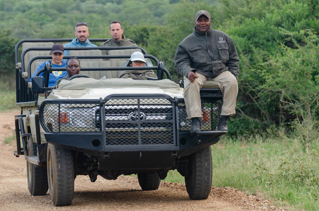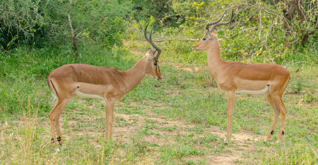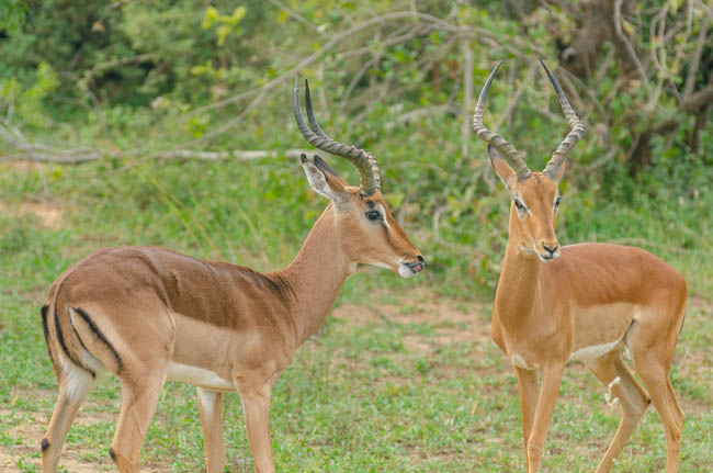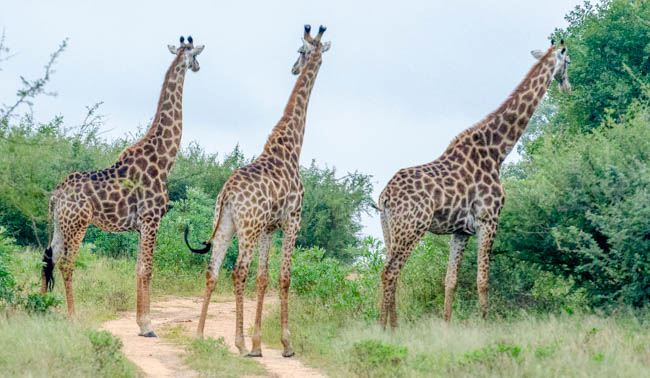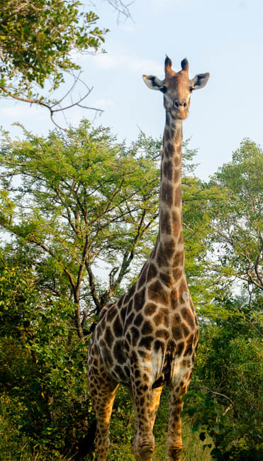 Today seemed to be a day for giraffes! After riding the train all night, we had a continental breakfast at 5 am and we loaded in a bus at 5:30 am. We arrived at the Kapama Game Reserve and were able to watch the sun come up as we entered the park. Throughout our time, we encountered different groups of giraffes! These guys seemed as interested in watching us as we were in watching them!These giraffes seemed quite happy to slowly cross the road and enjoy the morning!I enjoyed watching this guy move between trees has he munched on his breakfast!!I think we surprised this beautiful female impala!I think this bird is a white capped shrike.Right after I took the previous photo, he flapped his wings and flew away!These are the types of trucks we rode in as we went all over the reserve. The seat up on the front bumper seemed pretty exciting!!This is not a great photo, but you can see in the distance that there is a hippopotamus moving across the lake! I was excited to see one put his head up out of the water!!I am not certain, but I think this is a grey go-away-bird. I like the hair on the top of his head!!This guy was with another group of giraffes! He seemed very happy to poise for us as we took his photo!!I really liked the horns on this male impala!!A very special surprise is that we came across this cape buffalo!! They are known to immediately charge perceived threats. Thankfully, he largely ignored us after peering through these branches.Cape buffalos have such interesting horns!!The bright blue bird is a starling, but I am not sure of the name of the yellow billed bird. I thought they were nice to watch!There were quite a few starlings in the trees. Their blue feathers were quite bright!These two male impalas were deciding if they wanted to challenge each other. The one on the left kept putting his head down to move forward with his horns!They were dancing back and forth trying to decide if they wanted to fight.The one on the left was ready to get serious!!We kept encountering different groups of giraffes as we drove through the preserve! They were magnificent!!The giraffe skin was interesting to see!!They seemed quite curious about us watching them!!It was amazing to drive right up next to them!!This is a horrible photo, but if you use your imagination and look in the center of the photo, you can just barely see the face of a rhinoceros!!This is an African wild dog. They are a very endangered species!! Each of the animals has a unique design on their coat. We saw this fellow in the Hoedspruit Endangered Species Centre.This female cheetah was quite interested in looking at us!! We watched her in the Hoedspruit Endangered Species Centre.She showed us that she had very sharp teeth!!This is another female cheetah that was interested in seeing us!!This is a male cheetah checking out the scene. He looks very sleek and fast!!
