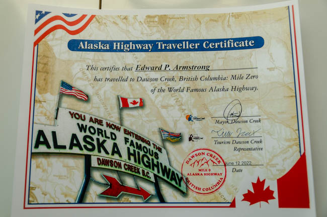 It is sort of odd because I have driven 2,884 miles since this trip began when I left Arizona, with a detour through part of California. Now that I reached mile 0 of the Alcan highway, I still have a long way to travel. Fairbanks is 1,523 miles away!! I am more than halfway to Alaska, but it is not “just around the corner.” Alaska is a long way away, but I have very much enjoyed the beauty traveling through Canada.