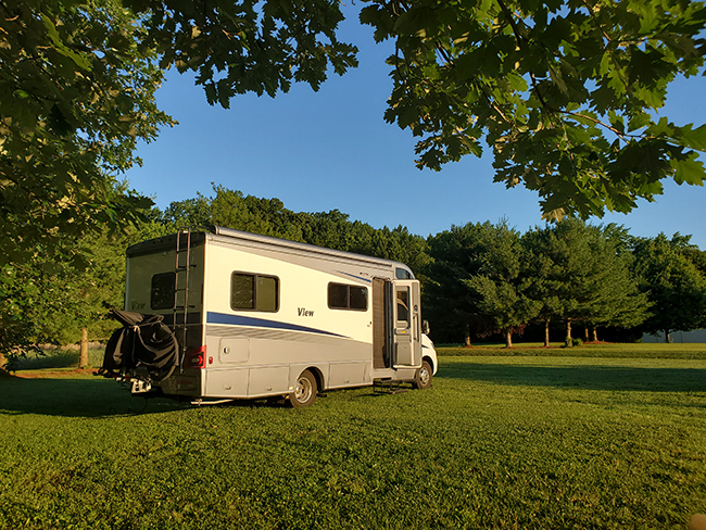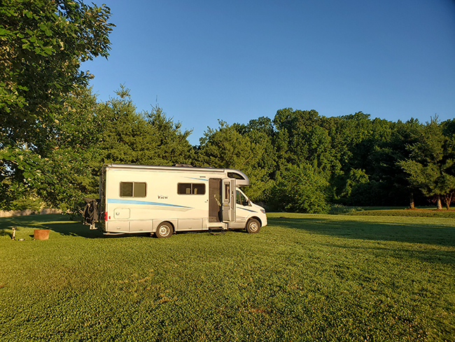 When I arrived at my spot to park the RV, I was pleasantly surprised to see all the trees around me. I was the only person there, so it was extremely quiet and peaceful! What an incredibly beautiful setting!!