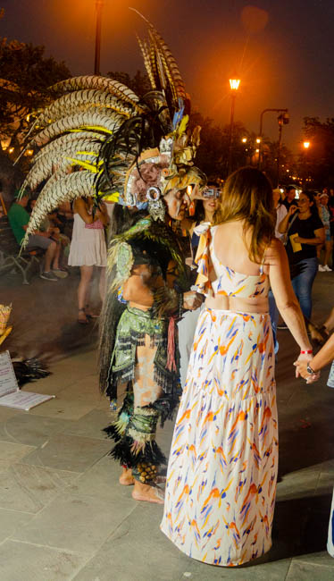 After breakfast in Merida, we drove to see the Ake ruins. These were massive and impressive Mayan ruins. Over time, some trees have started to grow from the ruins.This shows the number of levels the Mayans used as these structures were built. It also shows the brewing storm clouds that were moving in!These columns built by the Mayans were very impressive that they were still standing! I was surprised because most ruins do not have columns like these. It also shows the dark clouds becoming more foreboding!Right after I took this photo of another Mayan ruin in Ake, the clouds opened up and we had a major rainstorm. I brought a rain coat, but it was warmly stored in my hotel room and not available when I needed it. Despite the storm, we gathered under a large tree and continued listening to a lecture about the Mayans and learned more about the site. Everyone was completely soaked. It was sort of refreshing because it had been warm and humid throughout the morning. I protected my camera under my big hat. The Yucatan is quite an interesting and surprising place!The next agenda was lunch in a nearby town. This was shredded dear meat cooked in yummy spices. I has some wonderful slices of avocado too! The small bowl on the plate was filled with very hot habanero spices! These spices were extremely hot!! I sprinkled only the liquid in the spice bowl onto my food. The spices added a nice zest to the meal.Next, we drove to Izamal and enjoyed seeing everyone celebrating Our Lady of Guadeloupe. These embroidered dresses were an important local custom of the celebration. I absolutely loved the colors!All kinds of vendors were setup throughout the community!!I was not able to identify the role of this woman, but she appears to have been honored as part the celebration. She saw me looking at her and welcomed me to take her photo! She grabbed the purple sash and ran it along her arms so that it would be included in the photo. It was quite fun to take her picture!This is the top of the church in the town. There is some controversy because it was built on top of one of the main Mayan ruins.I enjoyed watching these ladies leave the church wearing their beautiful dresses!Inside the church we saw a statue of Our Lady of Guadalupe. As we left the church to walk to another famous Mayan ruin, it was fun to see the colors and festivities of the celebration!!I enjoyed how this horse and carriage were decorated!!Vendors were setup everywhere throughout the town!!The locals were relaxing on the curb!I loved the colors on this lady’s dress! We was walking down the steps from the largest Mayan ruin (by weight) the Yucatan region. I climbed up one series of steps on this Mayan ruin, reached this plateau, and could then see another series of steps to the top of this pyramid. I decided to forgo the final series of steep steps and instead enjoy watching people climb up and down the ruin.