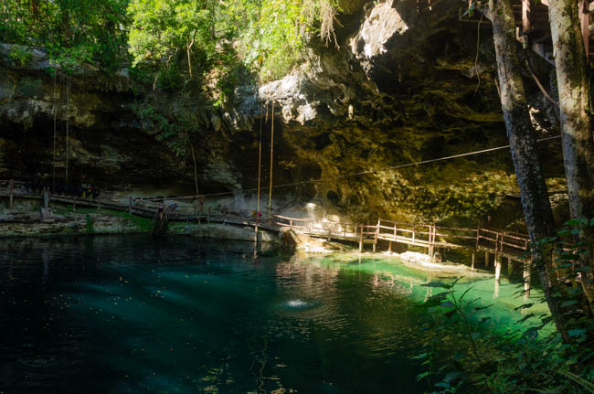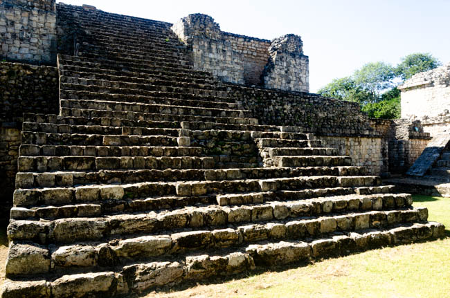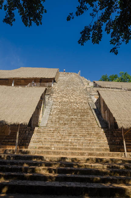 Ek Balam Ruins are very old Mayan ruins that were a series of different buildings. This is Juan and we was a superb guide telling us everything about Mayan culture and history that you would ever want to know! I really enjoyed learning from him!!This huge iguana created us as we arrive at Ek Balam. As soon as he heard my camara click, he quickly ran under the sidewalk.The was a gateway into a series of Ek Balam buildings.This shows the huge size of the Mayan ruins.This shows the number of layers as the structures were built.These stairs were well constructed and I climbed to the top!! Climbing down is much more difficult than climbing up! No one in our group fell as they climbed down!The Mayan craftmanship was amazing. This photo was taken from the top after I climbed the stairs.This is a ball stadium were participants used a rubber ball made from the rubber plants that grow in the Yucatan region.This is an enormous staircase at another Ek Balam building. It is very steep and our leader did not want our group to climb up because of the risk of falling. Most people that tried climbing needed to either use their hands when climbing down, or to sit on their bottom and slowly scoot down. It was amazing to see everything that the Mayas built here!!This is a photo of the cenote at the Ek Balam ruins. It is basically a very deep sink hole down into the limestone. The water is a deep turquoise and there is fresh water that continually flows into it. At the surface, the water was refreshing, but it quickly became much colder the deeper you go. The catfish in the cenote are blind because they swim in the caves associated with the cenote.