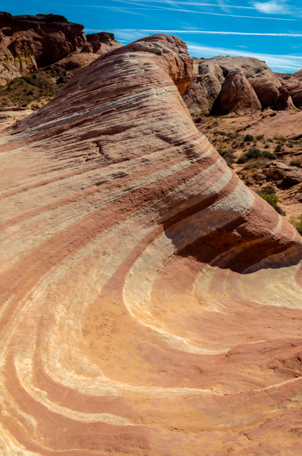 A wonderful aspect of traveling is that you get to make spontaneous, unexpected changes to your travel plans. I was driving through Nevada when I saw a sign for the Valley of Fire State Park. I decided to take the exit and see what it looked like. I remember the rich rock colors west of Las Vegas a few years ago, so the name Valley of Fire demanded I take a look. What a beautiful location!!