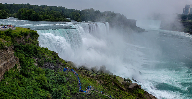 This was our boat filled with excited people to see the waterfalls!This is approaching Horseshoe Falls!This is the left side of Horseshoe Falls! Note the size of the people to the left of the falls.This is the right side of Horseshoe Falls! We can feel the rumble in the water!Getting closer and feeling the force of the water and mist rising up around us!The force of the water is intense!Amazing to hear the water roar!This is the left side of the American Falls.Everyone on the boat is focused on the water crashing in front of us.We move in closer to the American Falls.This is the observation tower to get a good view of the American Falls. Not the size of the people on top.This is a view of the American Falls from the observation tower. The Horseshoe Falls are in the background on the right.A view from the observation tower.